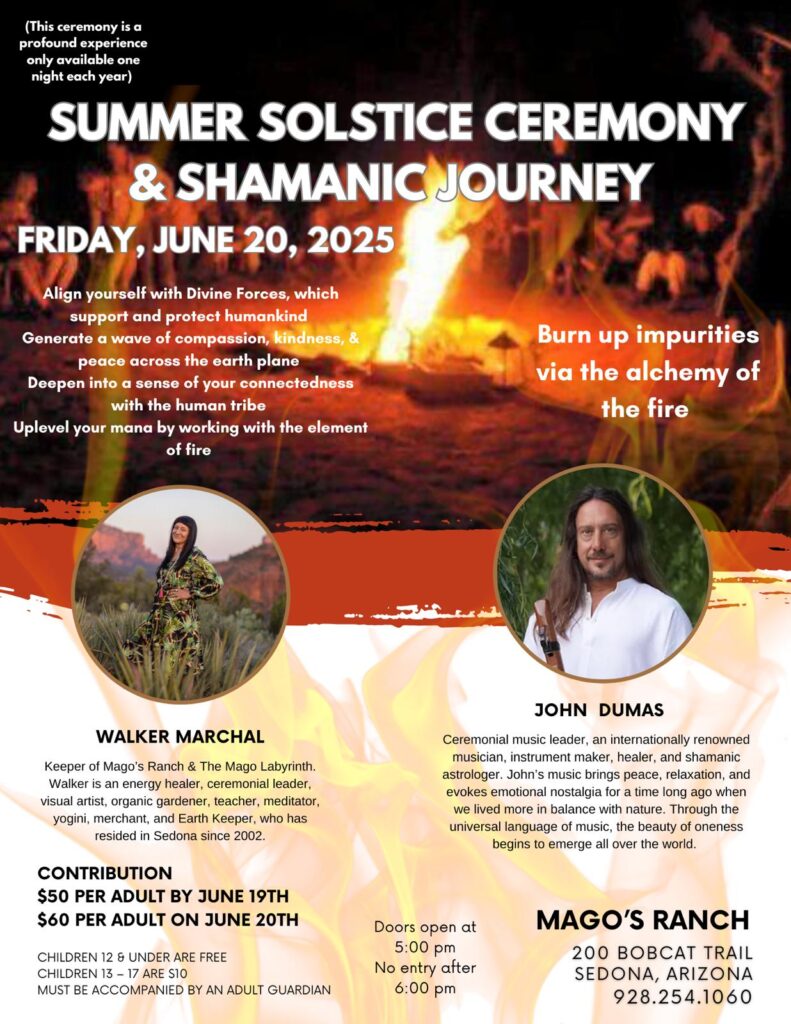This ceremony is held only one night each year, traditionally on Beltane, (May 1st), now moved to Saturday, June 8th. The ceremony is led by the Keeper of Mago’s Ranch, Walker Marchal. To preregister, p.m. or text Walker at 928.254.1060.